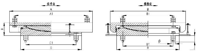 LQZ高承載全封閉球型支座的水平位移是由上(支座)滑板與中座板上的平面四氟板之間的滑動來實現的。另外,通過在上座板上設置導向板(槽)或導向環來約束支座的單向或多向位移,可以制成單向活動球型支座和固定球型支座。